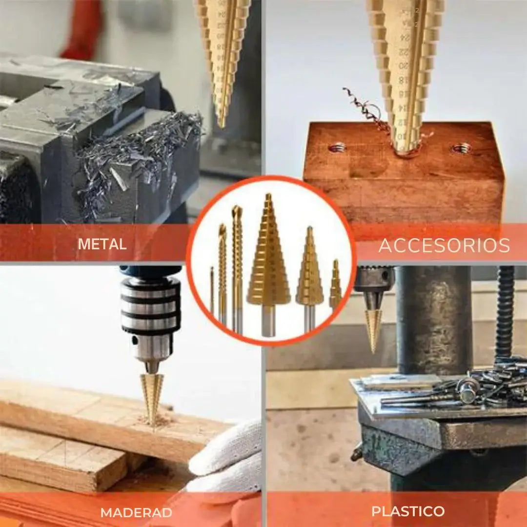 ✅ Múltiples tamaños en una sola broca: Su diseño escalonado te permite abrir agujeros de distintos diámetros sin tener que detenerte a cambiar la pieza. Ahorra tiempo, trabaja más rápido y logra un acabado profesional en cada proyecto.